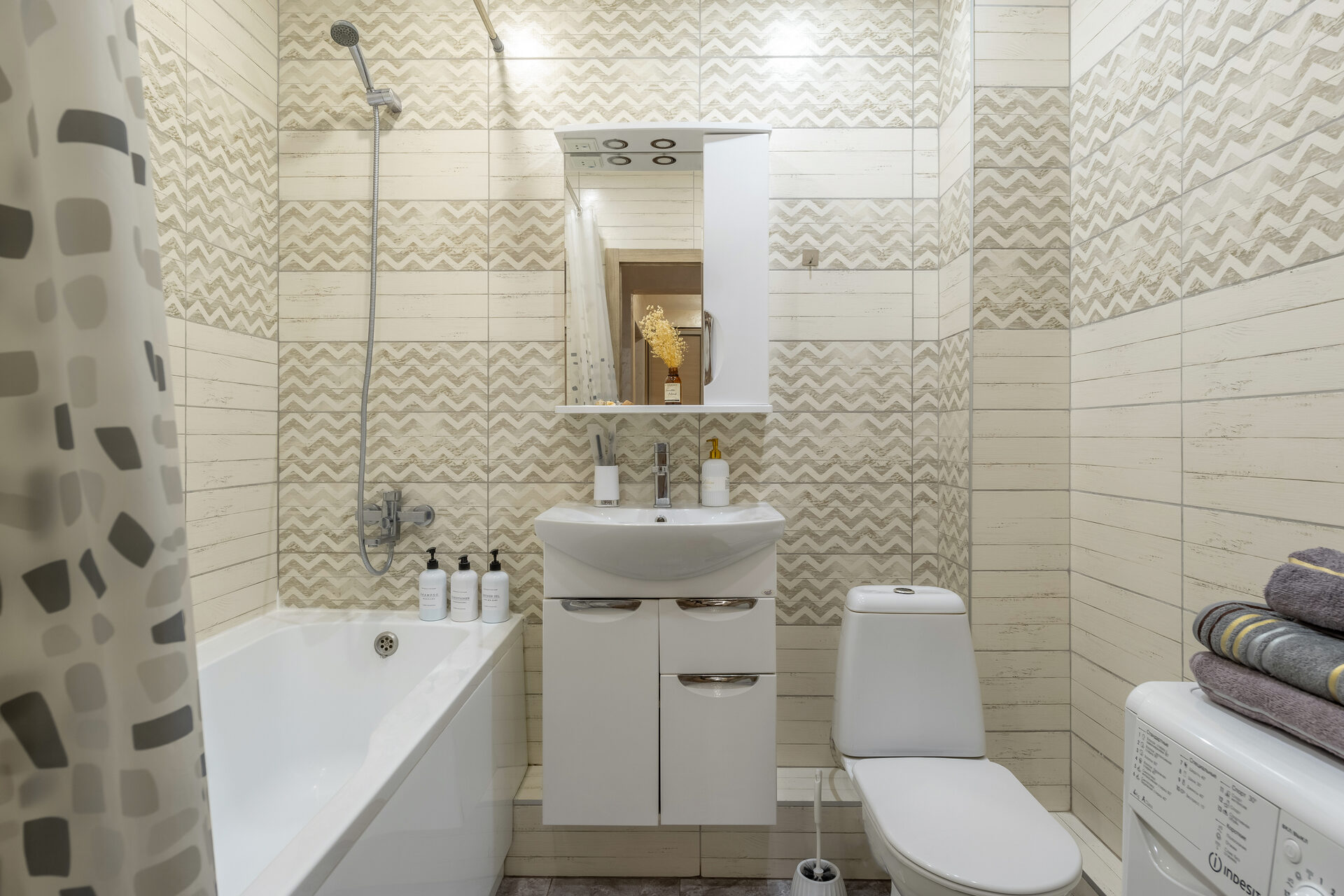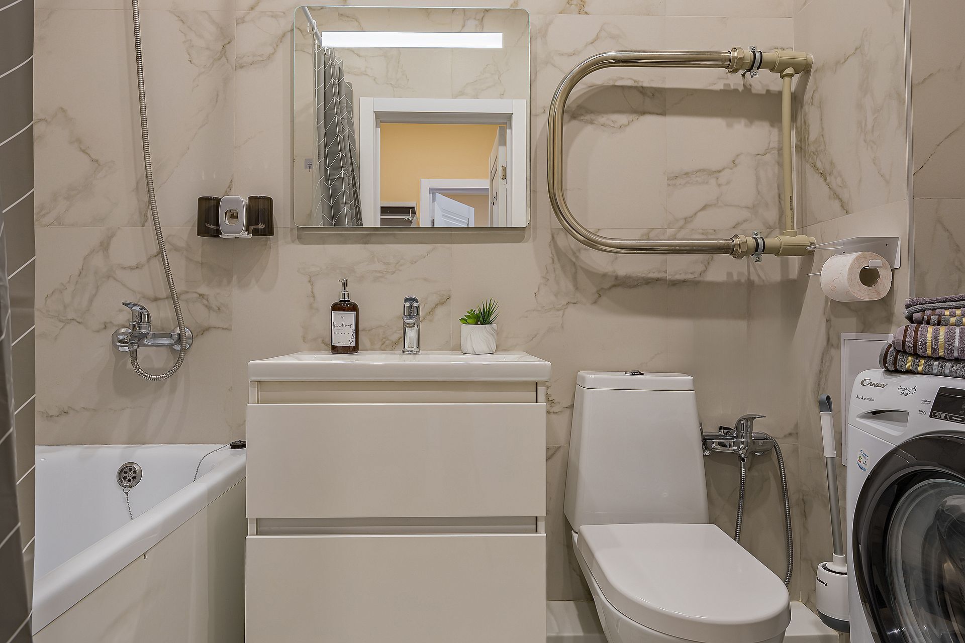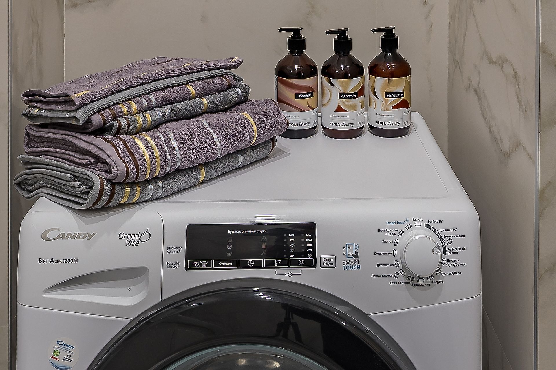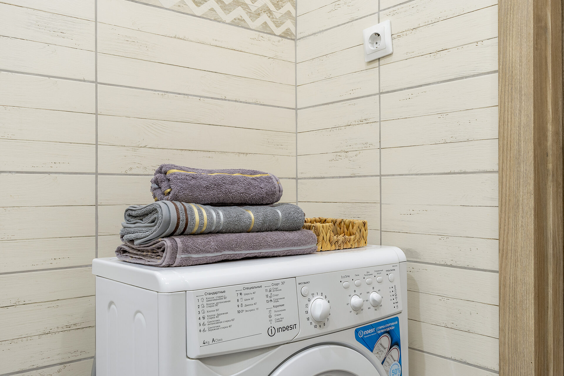 В ванной комнате расположена стиральная машина, имеется фен. На каждого гостя предоставляются полотенца и средства гигиены.