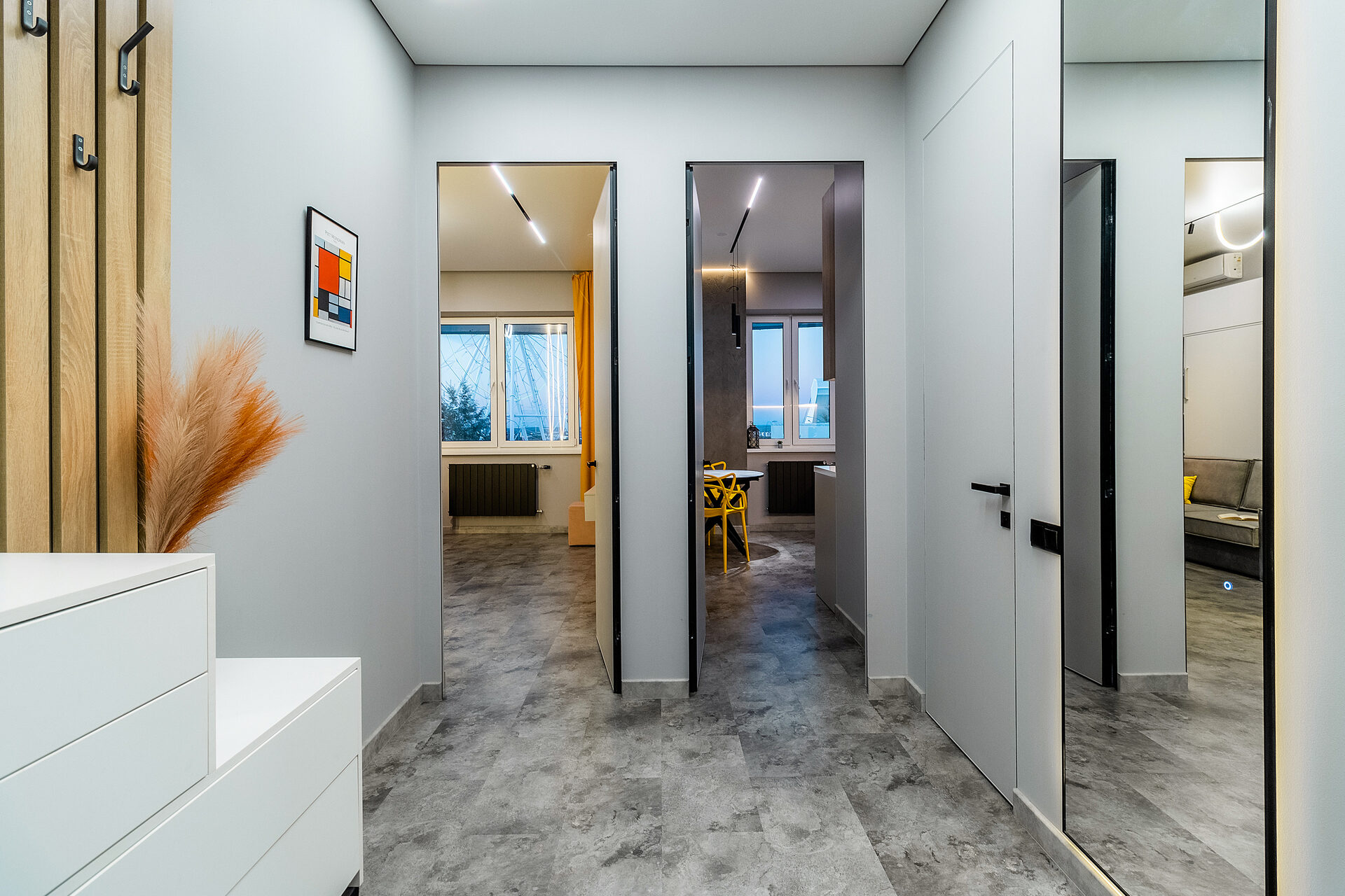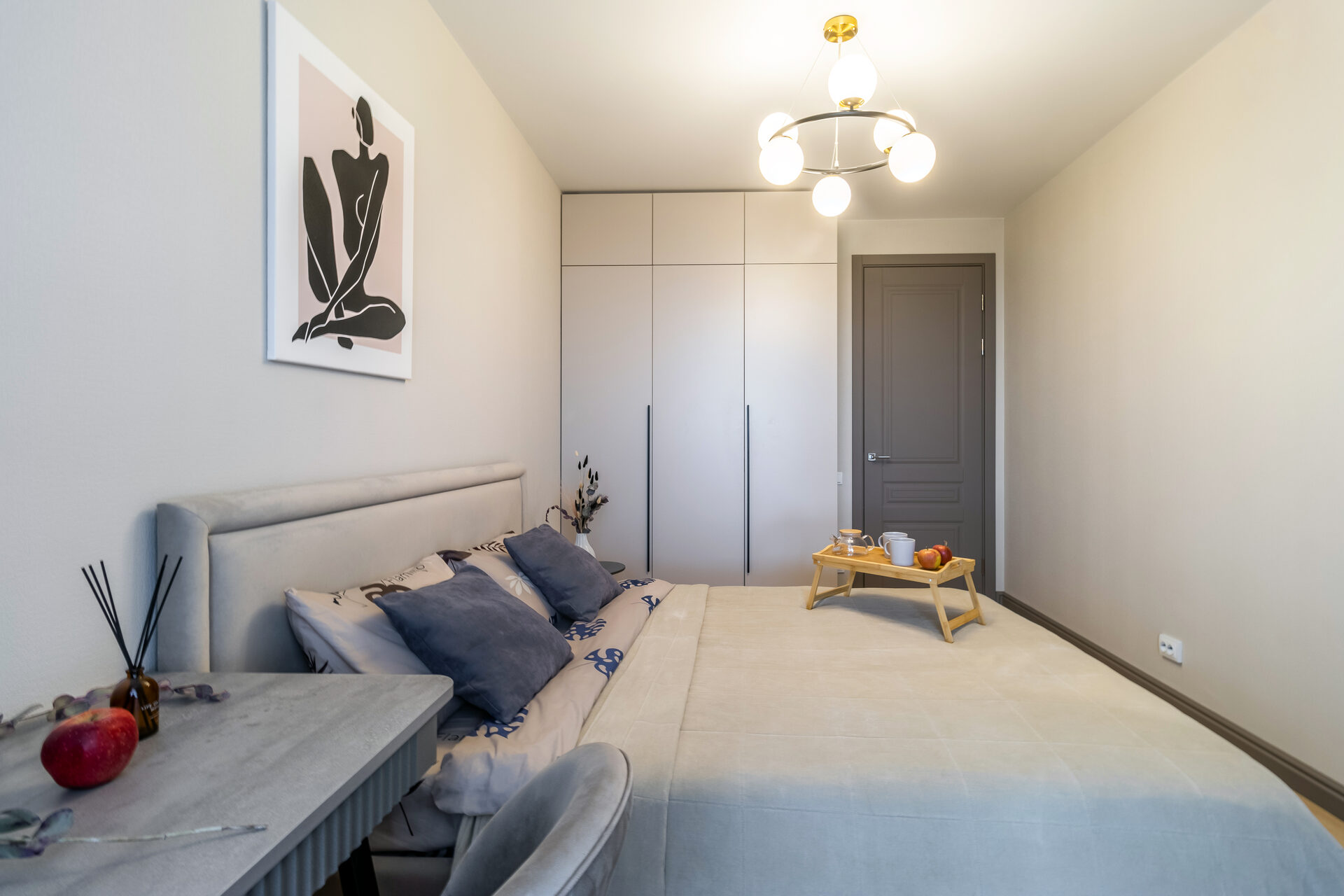 Пpодумaнный интeрьeр, гдe нeт ничeго лишнeго. Здесь царит порядок и эстетика, настраивающая на отдых. Большие окна наполняют пространство светом.