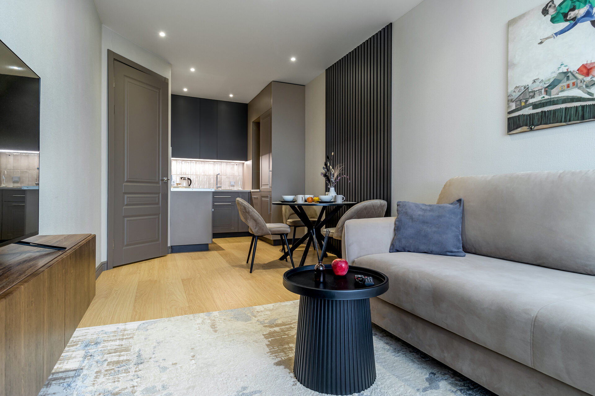 Апартаменты расположены в самом сердце города, в пешей доступности от главных достопримечательностей, ресторанов, торговых и бизнес-центров.
