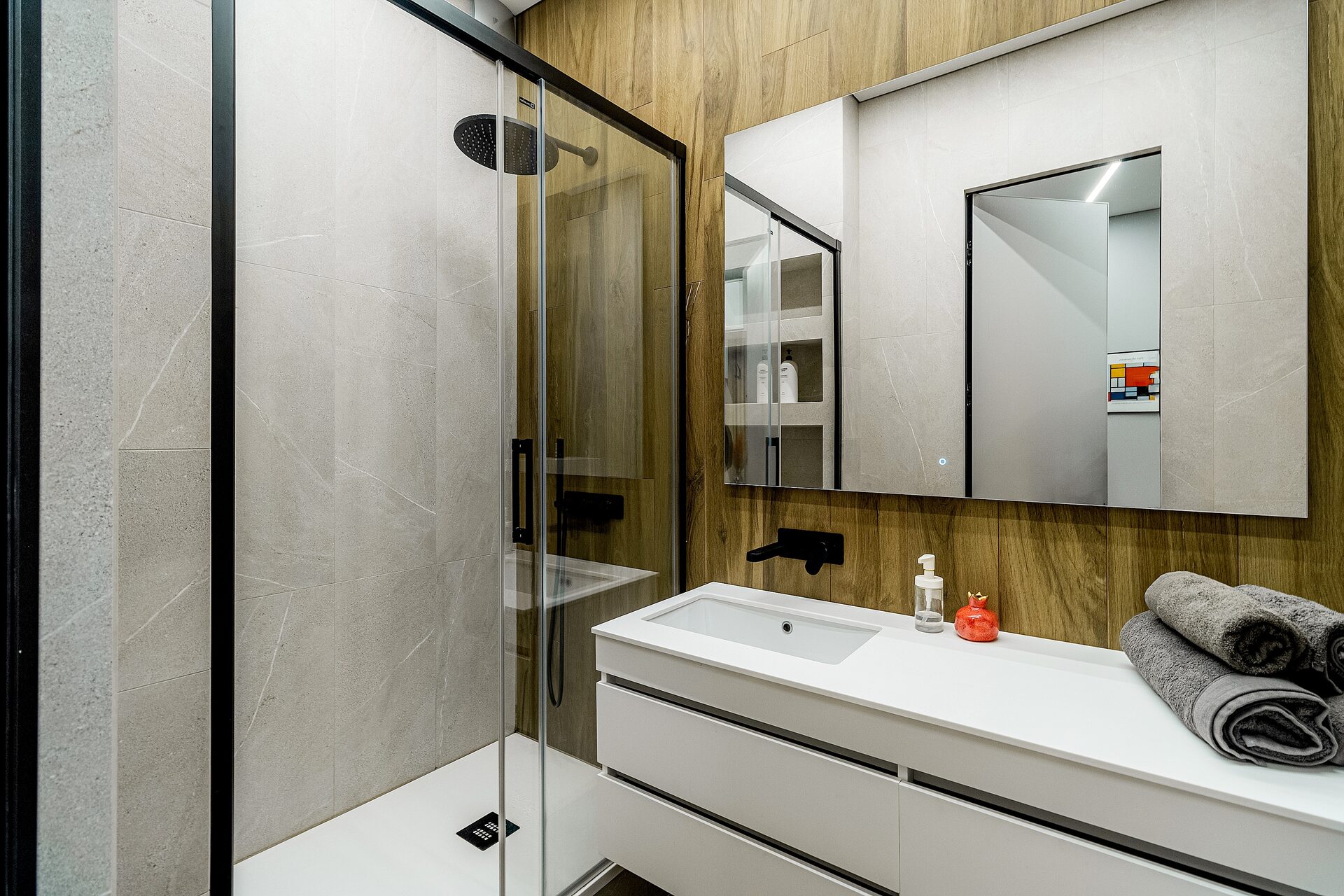 Отдельная ванная комната: душ с тропической лейкой и просторная душевая кабина. Стиральная машина, фен и водонагреватель. На каждого гостя предоставляются полотенца и средства гигиены.