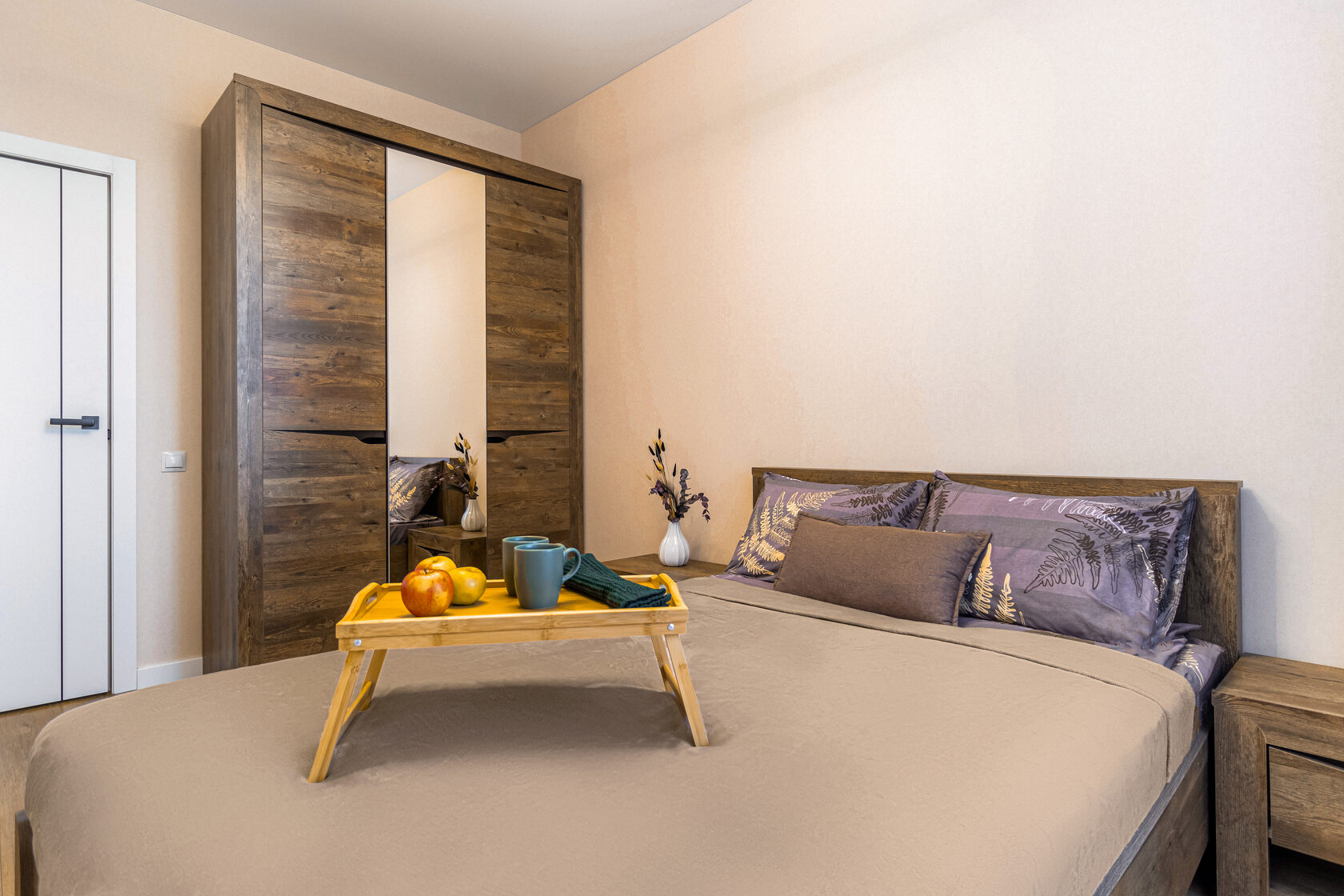 Спальные места: — двуспальная кровать (160х200 с ортопедическим матрасом) — диван-кровать (160×200) Возможно размещение до 4-х гостей.