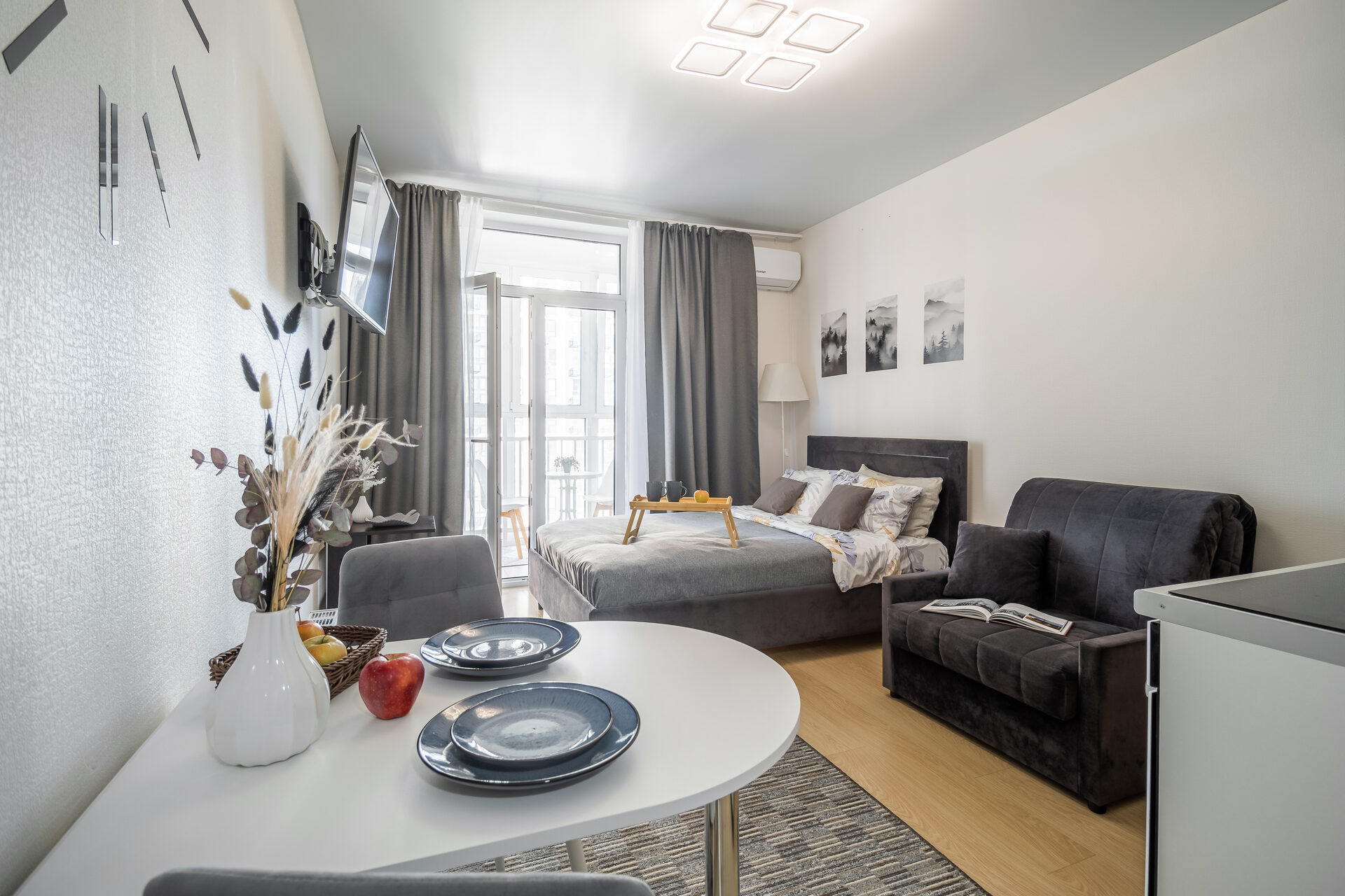 Светлый интерьер, панорамные окна и тихий двор. Приезжайте и чувствуйте себя как дома! Мы постарались создать всё для Вашего максимального комфорта!