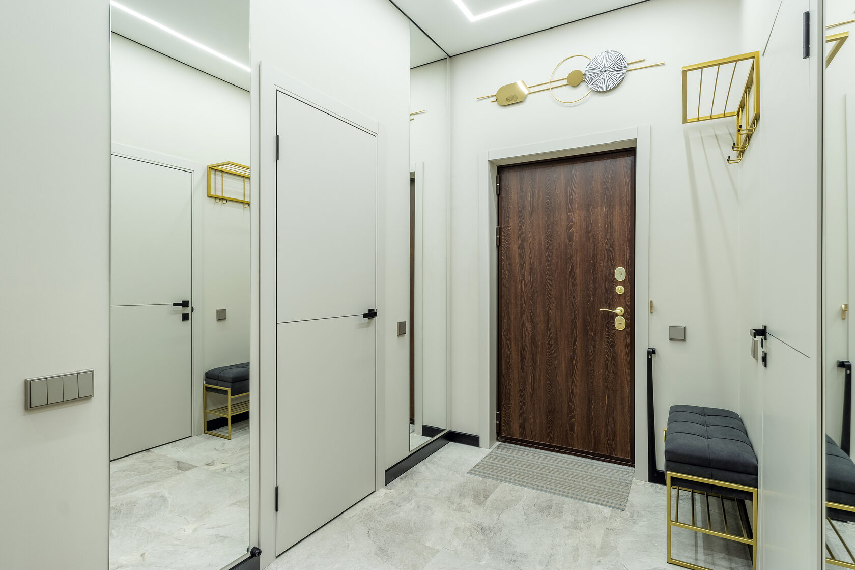 Грамотное зонирование, много света и тепла. Дизайн интерьера выполнен в роскошной палитре оттенков. Авторская мебель и тщательно подобранный декор создают атмосферу современной классики и утонченности.