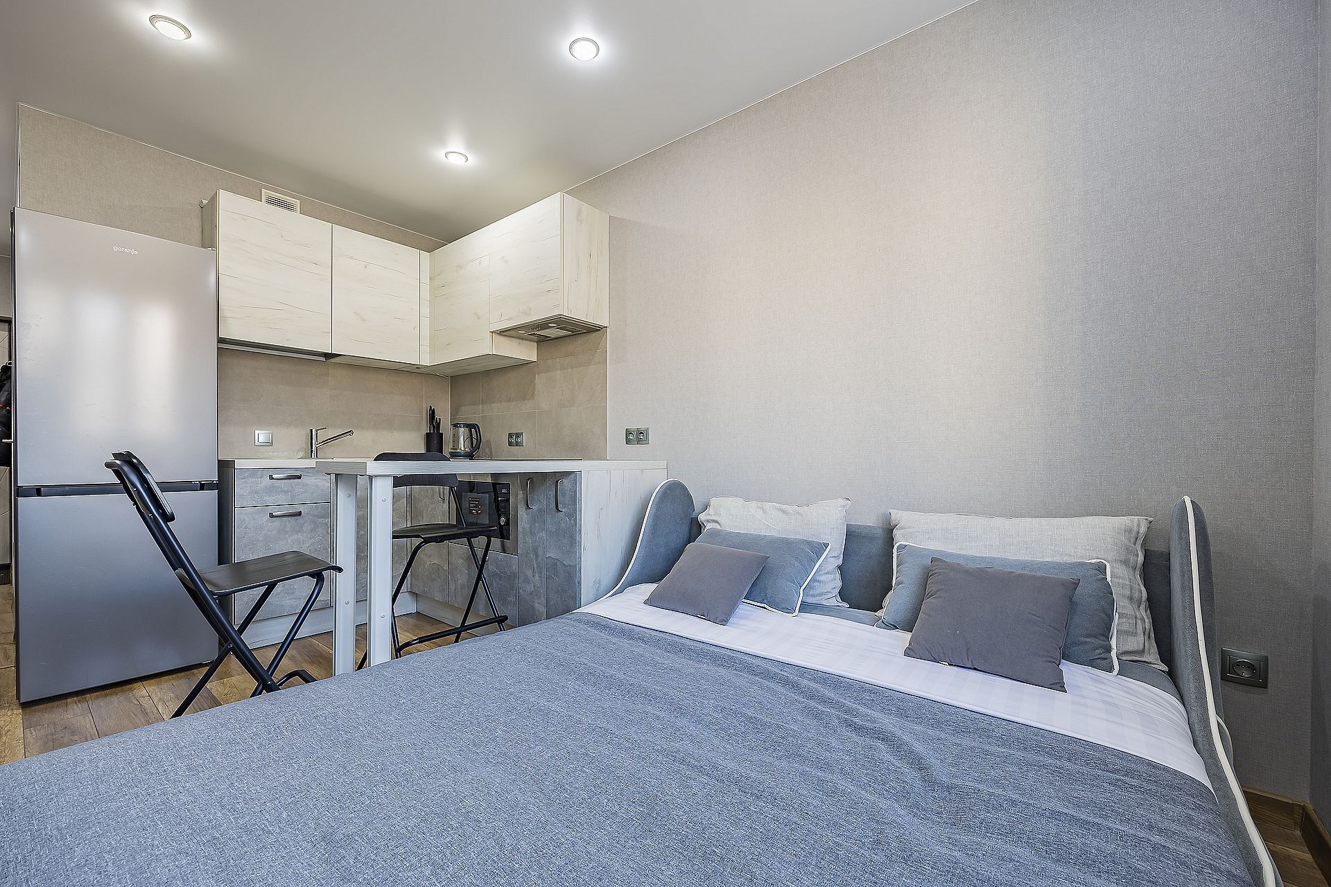 Спальные места: — Двуспальная кровать (160×200 см, ортопедический матрас) — Кресло-кровать. Возможно размещение до 3-х гостей.
